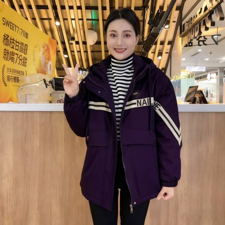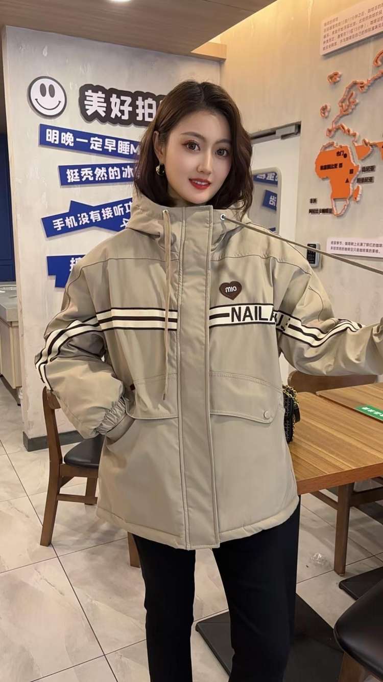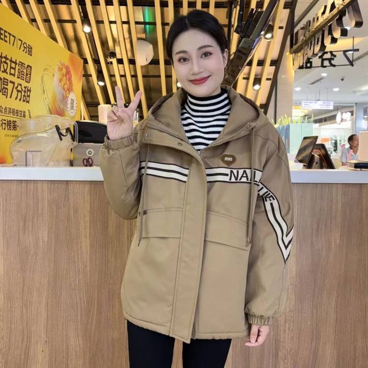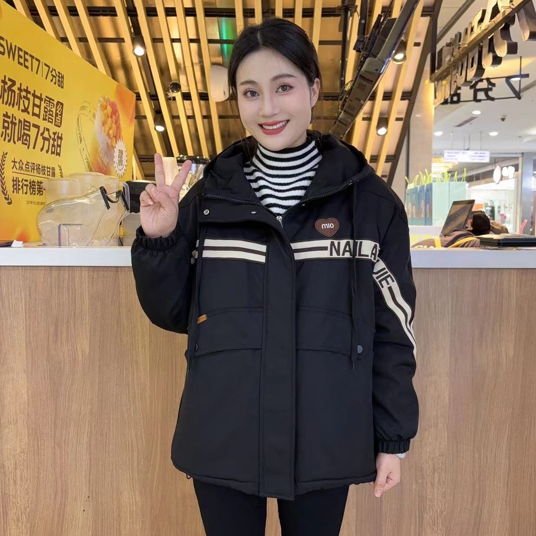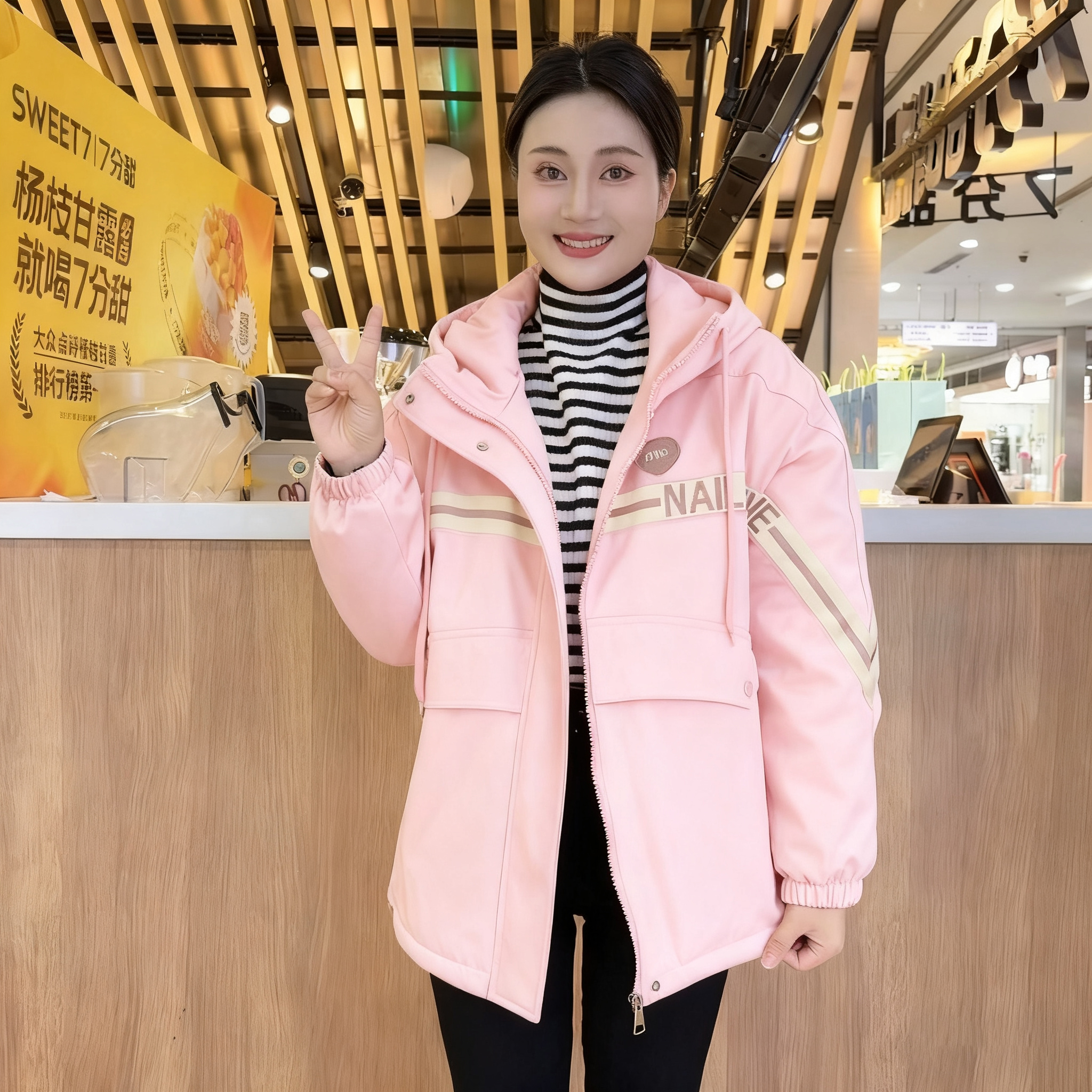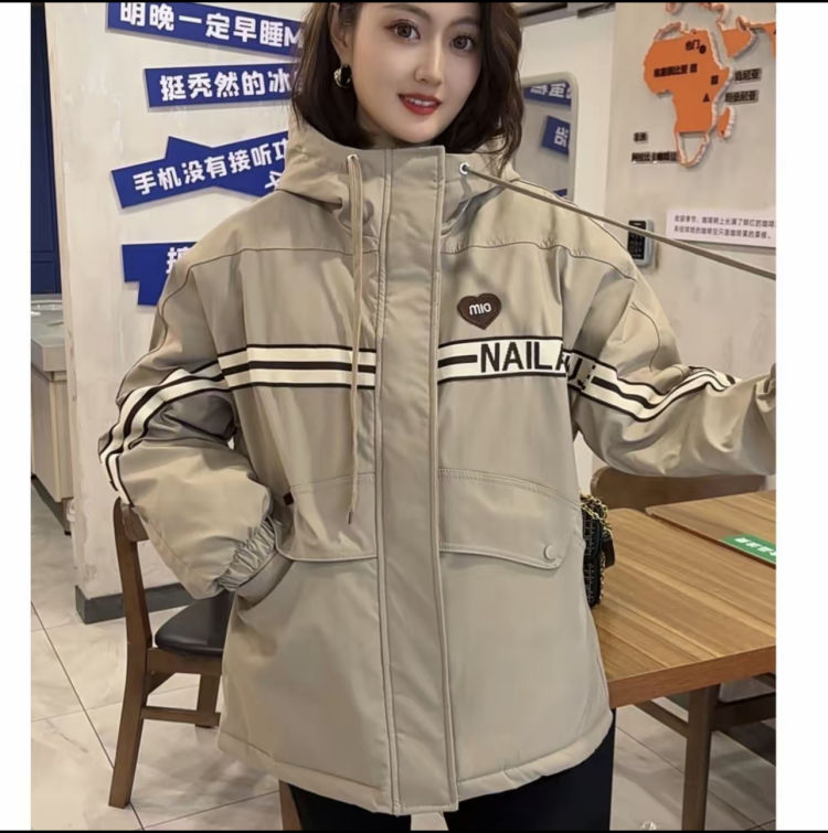 2025秋冬寬鬆時尚保暖連帽派克棉服外套